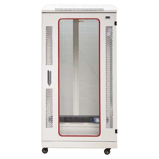 Cửa trước của tủ mạng 22U D600 Maxtel được làm từ kính hoặc mica trong suốt, giúp người quản trị dễ dàng quan sát tình trạng thiết bị bên trong mà không cần mở cửa.